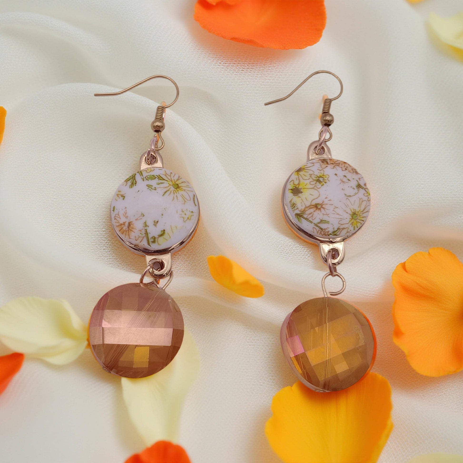 A stunning revival of a broken necklace, embellished with softly faded yellow and orange flowers. Showcasing the beauty in imperfection, presenting a piece that stir feelings of nostalgia and charm.