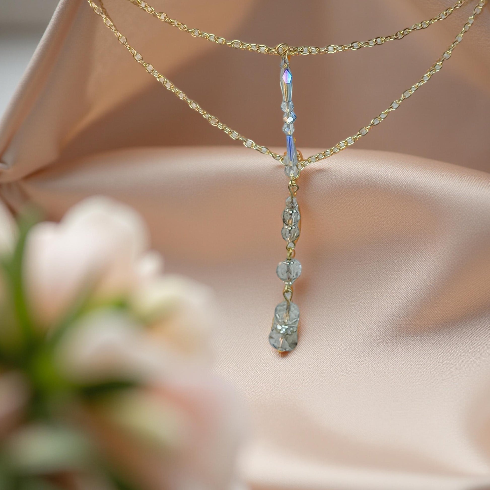 This choker and short chain duo was inspired by the glimmering reflections of light dancing on the surface of ocean waves.