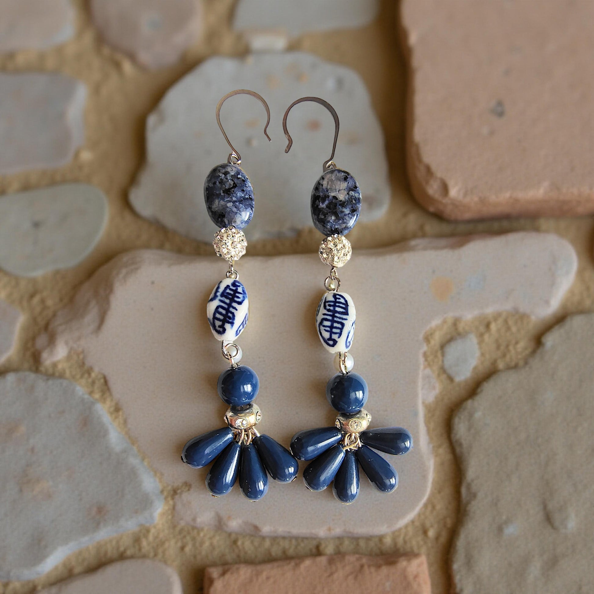 Eye catching sparkling sodalite dangle tassel earrings, are sure to get you noticed.